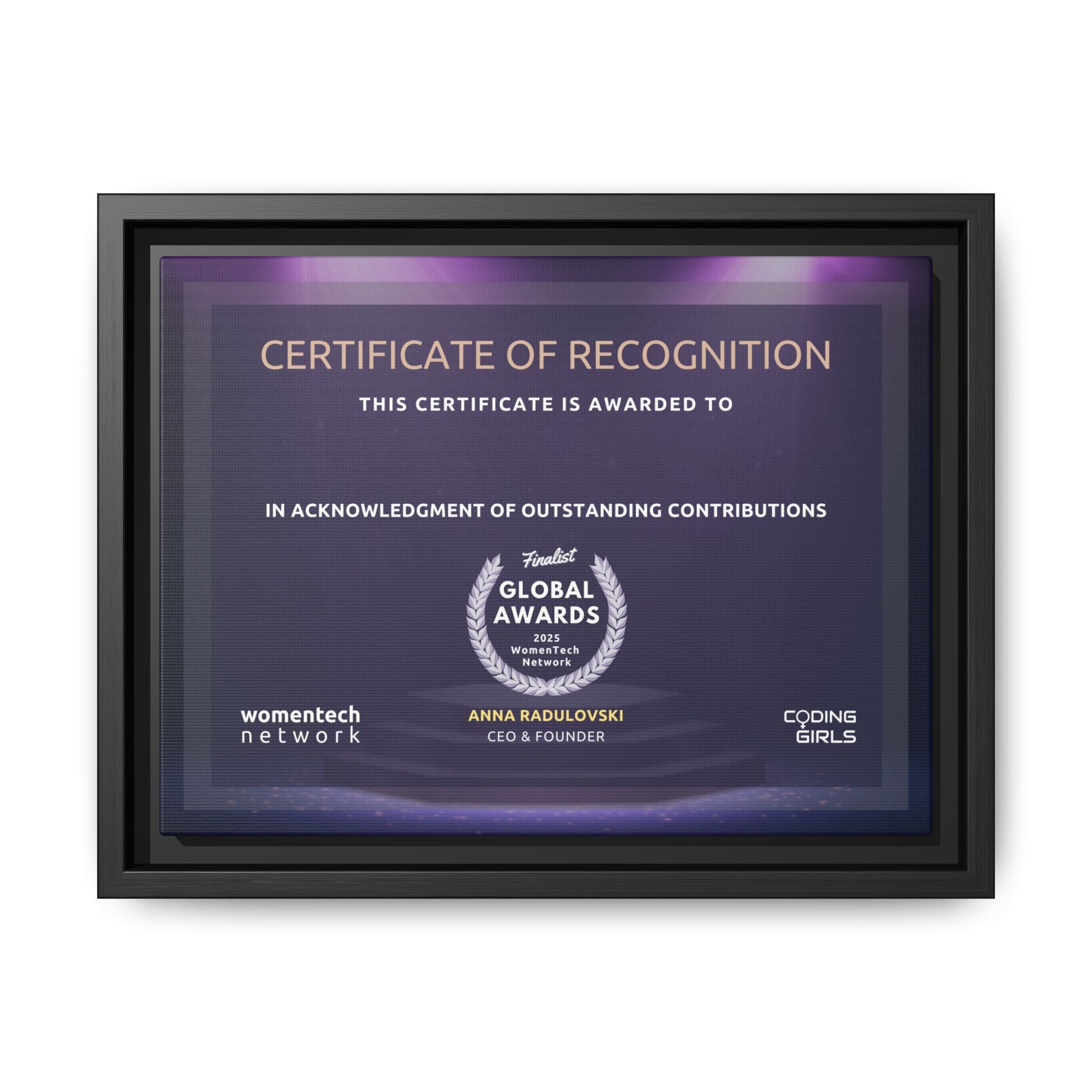 Finalist Printing Licence & Exclusive WomenTech Global Awards Certificate - Matte Canvas, Pinewood Framed (Multi-color)